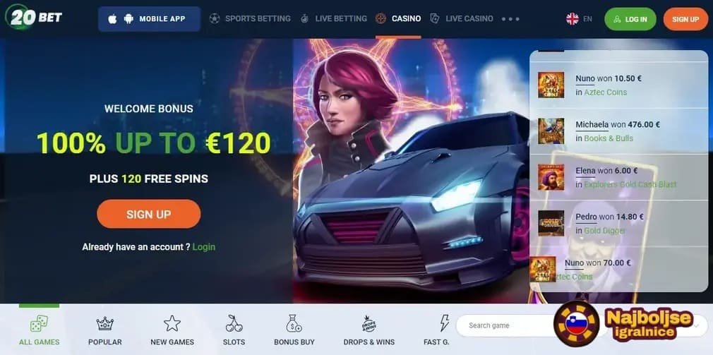 V igralnici 20Bet Casino so igralci dobrodošli s širokim izborom iger, gladko navigacijo ter hitrimi in zanesljivimi plačili. Naša ekipa je to platformo raziskala od znotraj do zunaj in jasno je, zakaj je postala zaupanja vredno ime v svetu iGaminga. Od dobro znanih igralnih avtomatov do iger z delivci v živo - na voljo je nekaj za skoraj vsako vrsto igralcev. Čeprav je nekaj področij, kjer bi se lahko izboljšala, zlasti za slovenske uporabnike, je splošna izkušnja pozitivna. Z uveljavljenim ugledom in čistim uporabniškim vmesnikom 20Bet Casino Slovenija zagotavlja tako raznolikost kot udobje za igralce, ki iščejo kakovostno igralno okolje. Ne glede na to, ali ste novinec v spletnih igralnicah ali izkušen slovenski igralec, ima ta platforma na voljo vse potrebno.