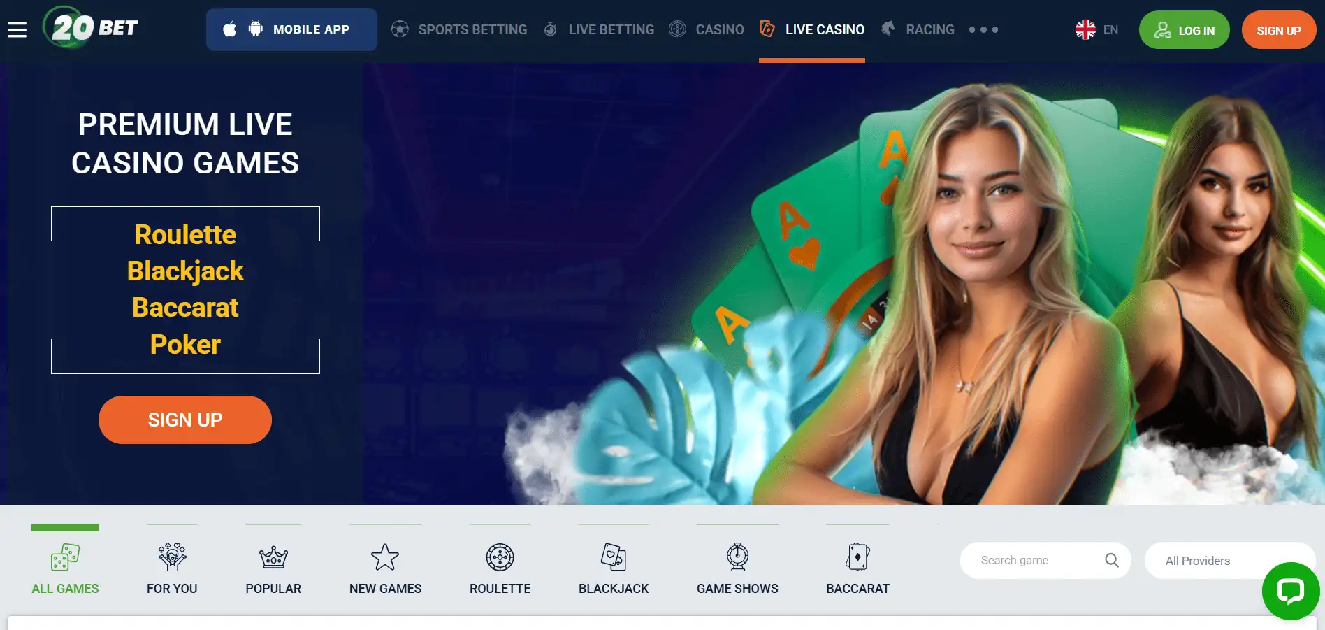 Igralcem, ki uživajo v strategiji kart, 20Bet ponuja več deset možnosti pokra, vključno s Texas Hold'em, Caribbean Stud in široko paleto video pokra s prilagodljivimi stavnimi limiti.