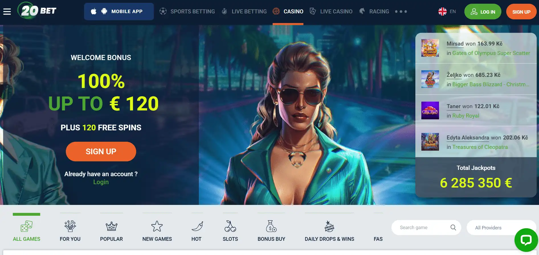 V igralnici 20 Bet so igralci dobrodošli s širokim izborom iger, gladko navigacijo ter hitrimi in zanesljivimi plačili. Naša ekipa je to platformo raziskala od znotraj do zunaj in jasno je, zakaj je postala zaupanja vredno ime v svetu iGaminga. Od dobro znanih igralnih avtomatov do iger z delivci v živo - na voljo je nekaj za skoraj vsako vrsto igralcev. Čeprav je nekaj področij, kjer bi se lahko izboljšala, zlasti za slovenske uporabnike, je splošna izkušnja pozitivna. Z uveljavljenim ugledom in čistim uporabniškim vmesnikom 20Bet Casino Slovenija zagotavlja tako raznolikost kot udobje za igralce, ki iščejo kakovostno igralno okolje. Ne glede na to, ali ste novinec v spletnih igralnicah ali izkušen slovenski igralec, ima ta platforma na voljo vse potrebno.