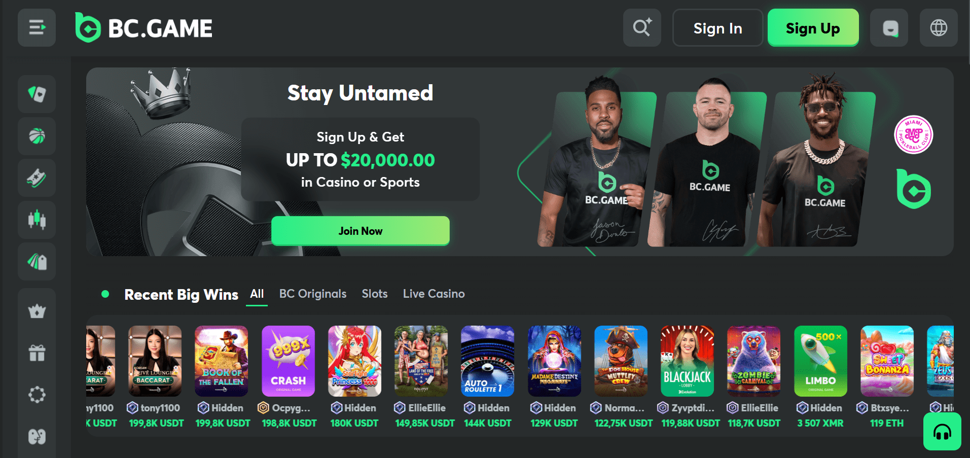 BC.Game Casino je moderna spletna igralniška platforma, ki je hitro pridobila prepoznavnost med igralci v Sloveniji in po svetu. Znana po elegantni zasnovi in širokem izboru iger ponuja vse, od klasičnih igralnih avtomatov in iger z delivci v živo do ekskluzivnih BC Originals. Igralnica izstopa tudi z velikodušnimi promocijami, vključno s paketom dobrodošlice v vrednosti do 20.000 $, ter nagrajujočim VIP programom. Igralci lahko uživajo v tekoči igri, hitrih plačilih in močni usmerjenosti v kripto-prijazne transakcije. V tej BC.Game casino ocena igralnice bomo raziskali bonuse, igre, plačilne metode in celotno uporabniško izkušnjo, da vam pomagamo ugotoviti, ali je prava izbira za vas.