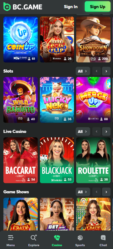 - Širok izbor igralnih avtomatov, iger v živo in BC Originals.