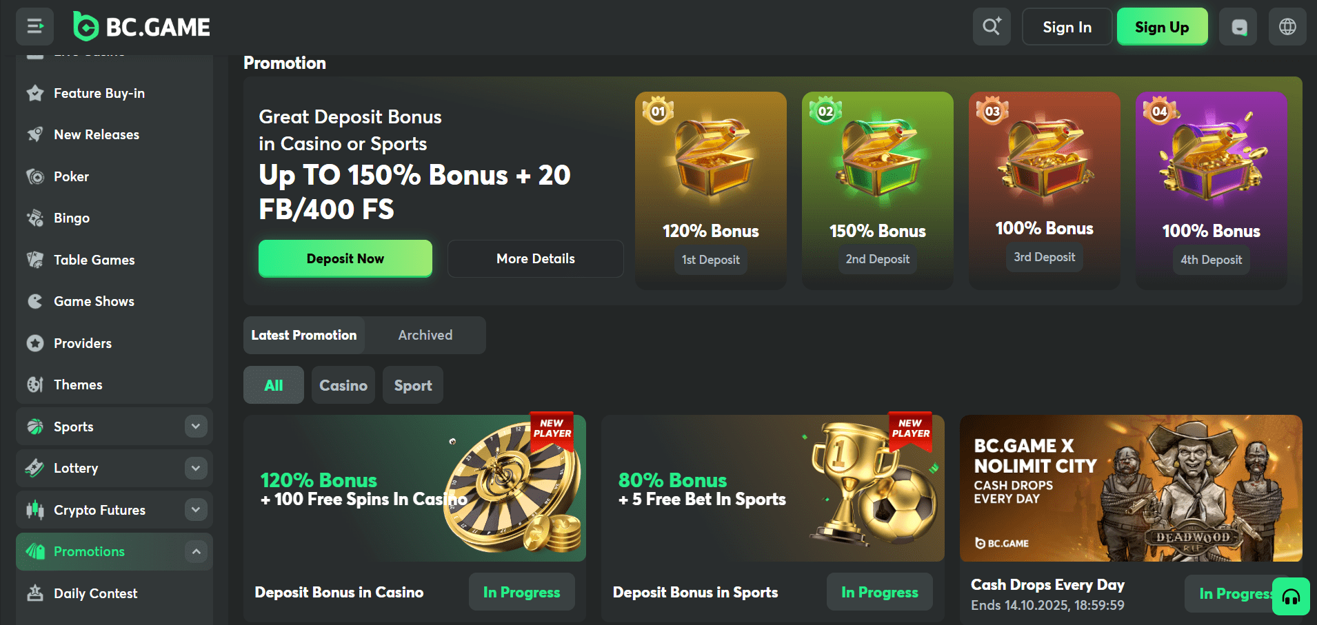 BC.Game casino promocije vključujejo številne redne ponudbe za igralce, ki prinašajo dodatne nagrade in priložnosti za zmago.