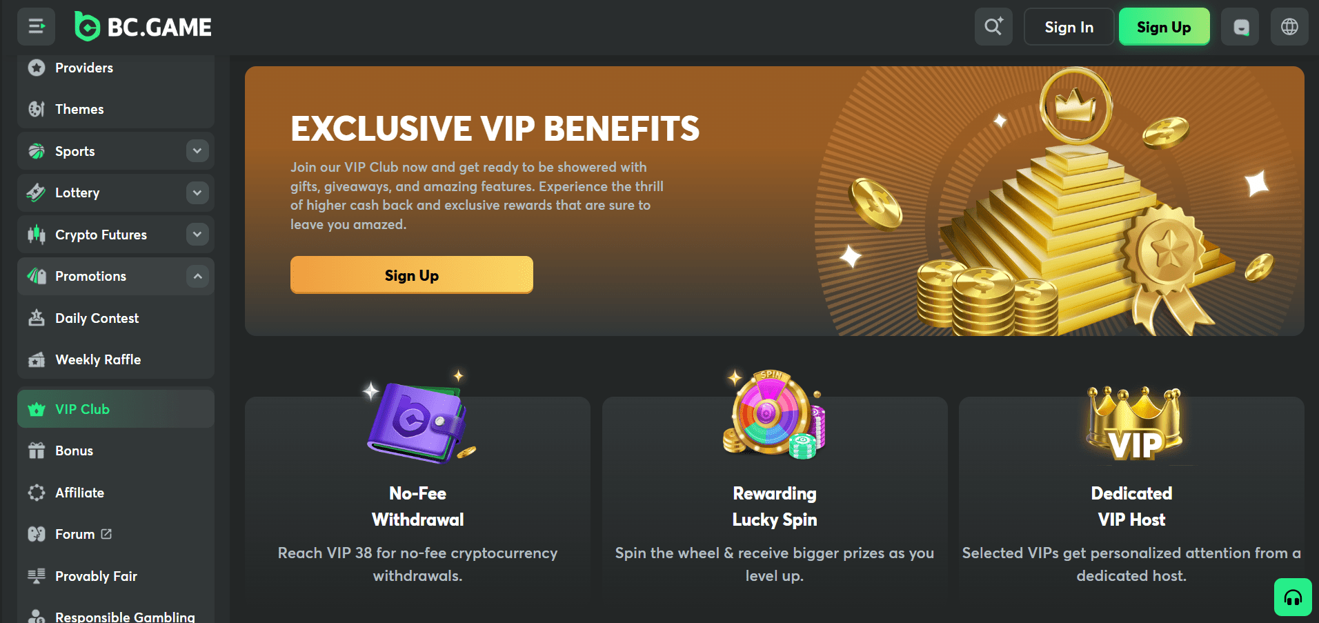Za dostop do teh ugodnosti BC.Game casino promocijska koda ni potrebna, saj so vsi bonusi samodejno na voljo ob izpolnjevanju pogojev.