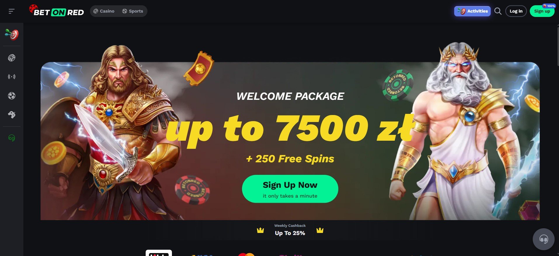 Na portalu NajboljseIgralnice smo ugotovili, da BetOnRed Casino ponuja enega najbolj dinamičnih in nagrajujočih bonusnih sistemov, ki so na voljo slovenskim igralcem. BetOnRed casino bonus v igralnici vključuje velikodušne pakete dobrodošlice, tedenska vračila denarja in rakeback ponudbe, pri čemer je vsaka promocija zasnovana tako, da izboljša celotno igralno izkušnjo ob ohranjanju poštenosti in preglednosti.