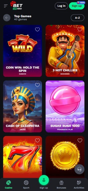 Prikaži večBetOnRed Casino ponuja več kot 6.000 iger vodilnih razvijalcev, kot so Amatic, BetSoft, Microgaming, Endorphina in Bgaming. BetOnRed casino izbira iger zajema vse – od klasičnih igralnih avtomatov in namiznih iger do izkušenj z delivci v živo. Slovenski igralci lahko raziskujejo progresivne jackpote, tematske video igralne avtomate, ruleto, blackjack, baccarat in poker mize. Vsaka igra temelji na tehnologiji »provably fair« in je testirana glede naključnosti, kar zagotavlja varno in zaupanja vredno igranje za uporabnike po vsej Republiki Sloveniji.