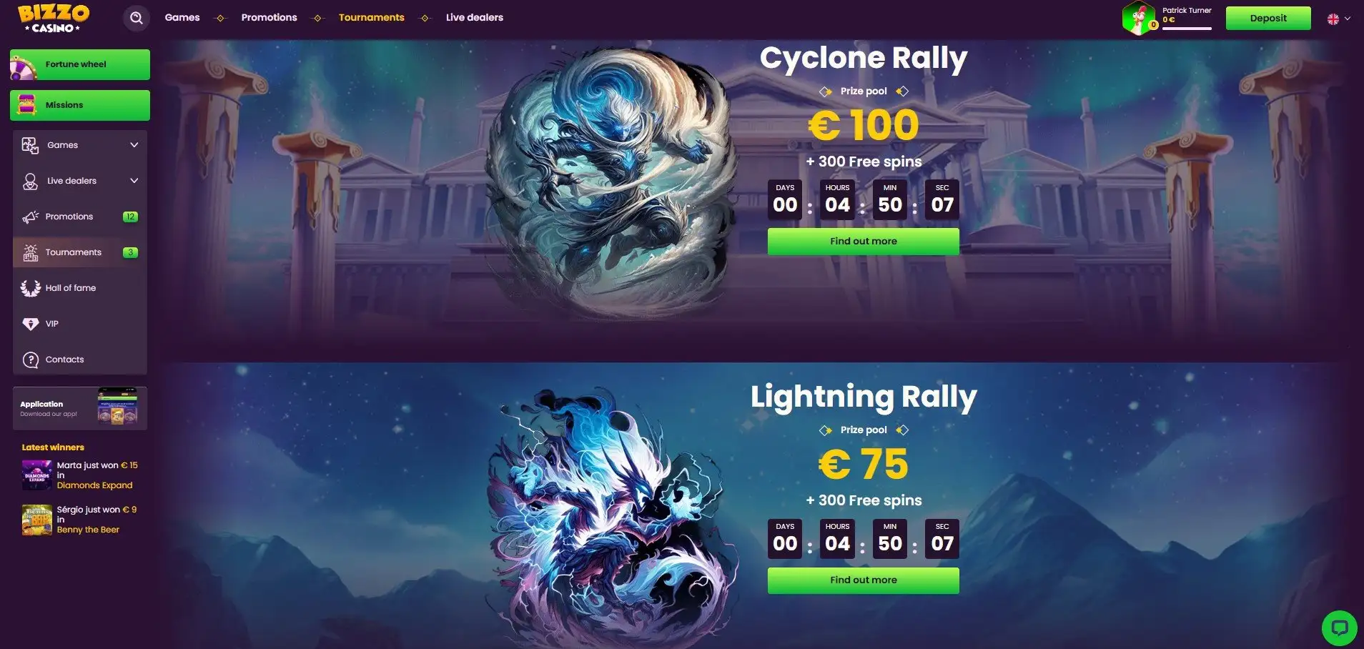 V igralnici Bizzo smo odkrili več energičnih turnirjev, ki neprestano potekajo in ponujajo Bizzo nagrade igralnice – prave denarne nagrade in možnost, da se povzpnete na vrh lestvice najboljših.