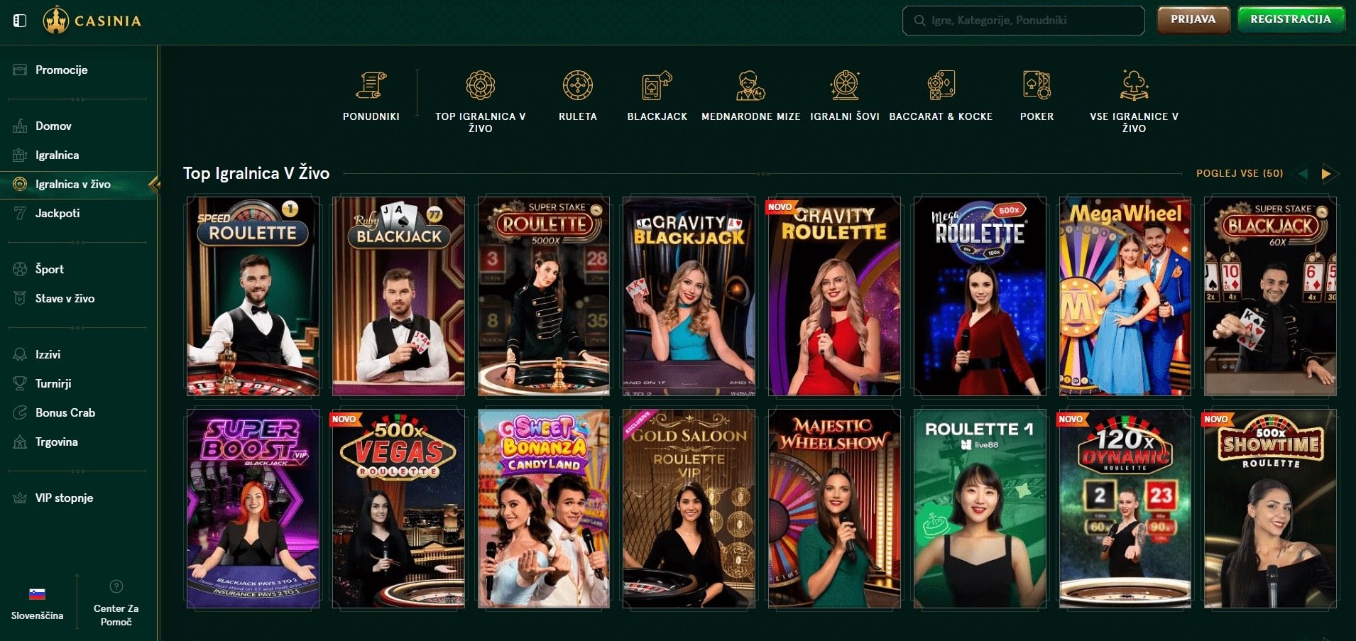 - Široka izbira igralnih avtomatov in iger z delivci v živo