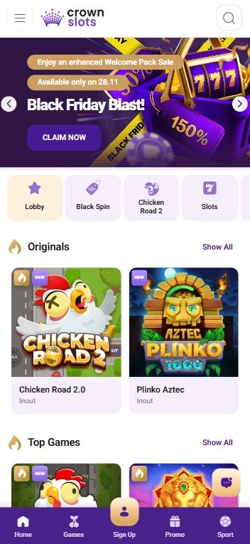 CrownSlots aplikacija trenutno ni na voljo kot samostojna prenosljiva aplikacija za iOS (App Store) ali Android (Google Play). Namesto tega igralnica ponuja optimizirano mobilno spletno stran, do katere lahko dostopate neposredno preko brskalnika. Ta pristop zagotavlja kompatibilnost z vsemi operacijskimi sistemi brez potrebe po nameščanju dodatne programske opreme. Igralci lahko dodajo bližnjico na domači zaslon svojega telefona za hitrejši dostop, kar ustvari podobno uporabniško izkušnjo kot nativna aplikacija.