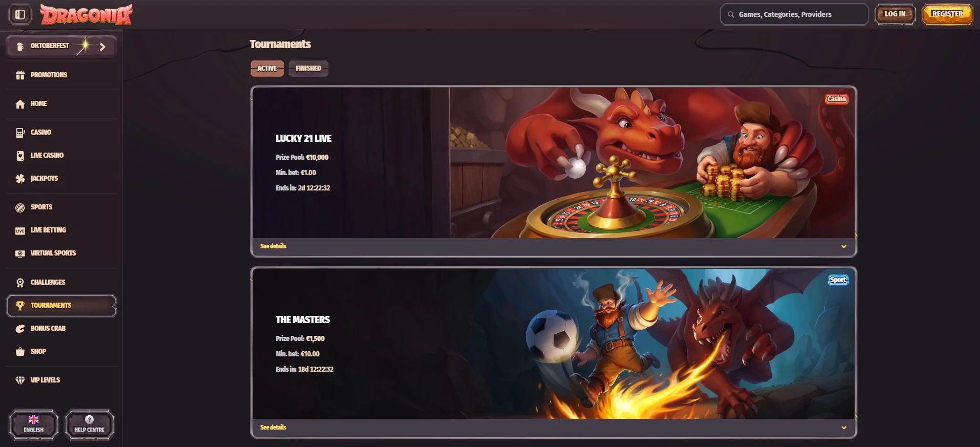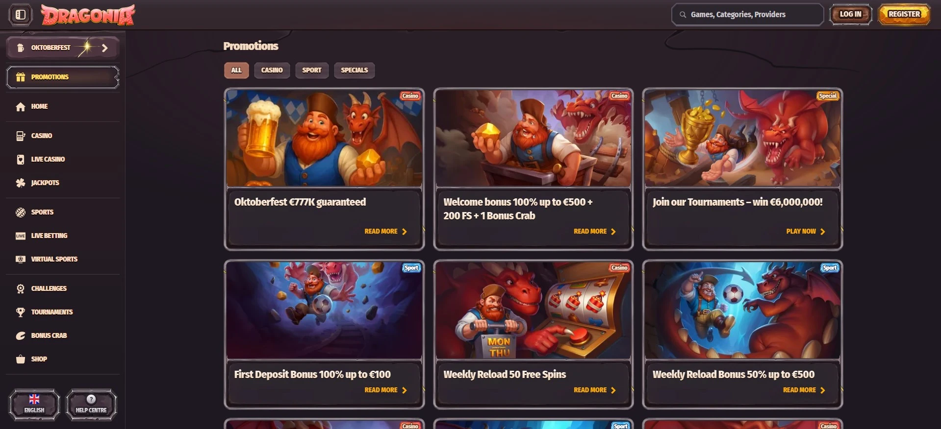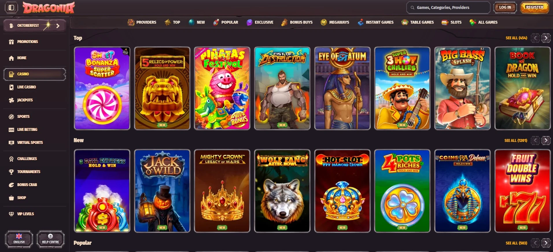 Dragonia ustreza tako priložnostnim igralcem kot tudi izkušenim igralcem na srečo. Ljubitelji slotov, navdušenci nad live casino igrami in športnimi stavami bodo vsi našli vsebino, prilagojeno njihovim željam.