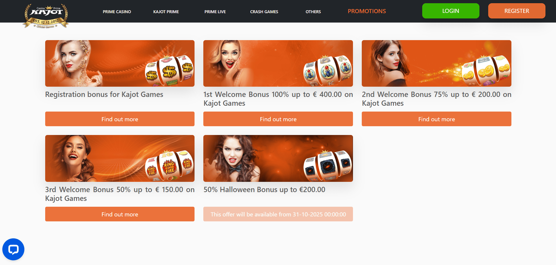 Kajot se bolj osredotoča na sezonske ponudbe in ekskluzivna žrebanja kot na odprte slot turnirje. Občasni nagradni dogodki, povezani s prazniki, kot je noč čarovnic, slovenskemu igralcu ponujajo dodatne priložnosti za povečanje stanja ali osvojitev posebnih nagrad.