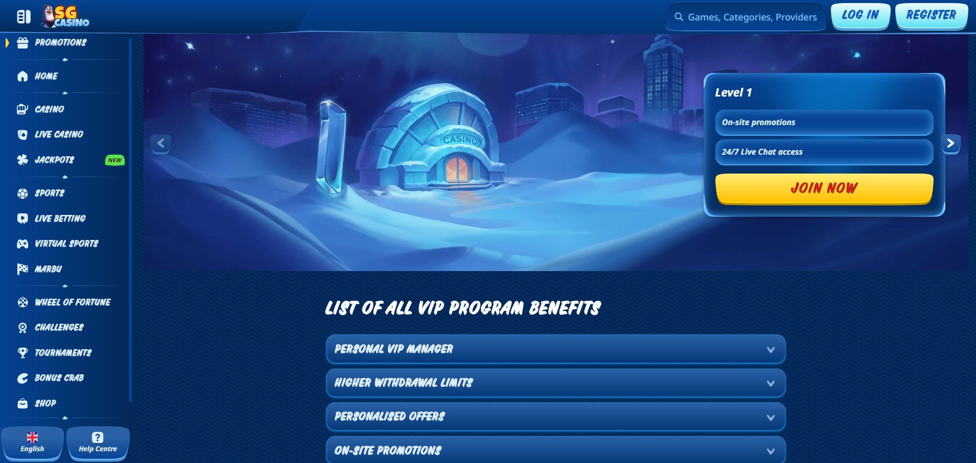 SG Casino vključuje sistem zvestobe, kjer igralci zbirajo kovance z igranjem, misijami in izzivi, kar podrobno opisuje tudi SG casino recenze. Te kovance je mogoče zamenjati za nagrade, kot so brezplačni vrtljaji, bonus sredstva ali vstopi na posebne dogodke. Napredovanje po stopnjah prinaša boljše menjalne vrednosti in ekskluzivne ponudbe. Aktivno igranje in sodelovanje v misijah pomagata slovenskim uporabnikom postopoma pridobivati več ugodnosti.