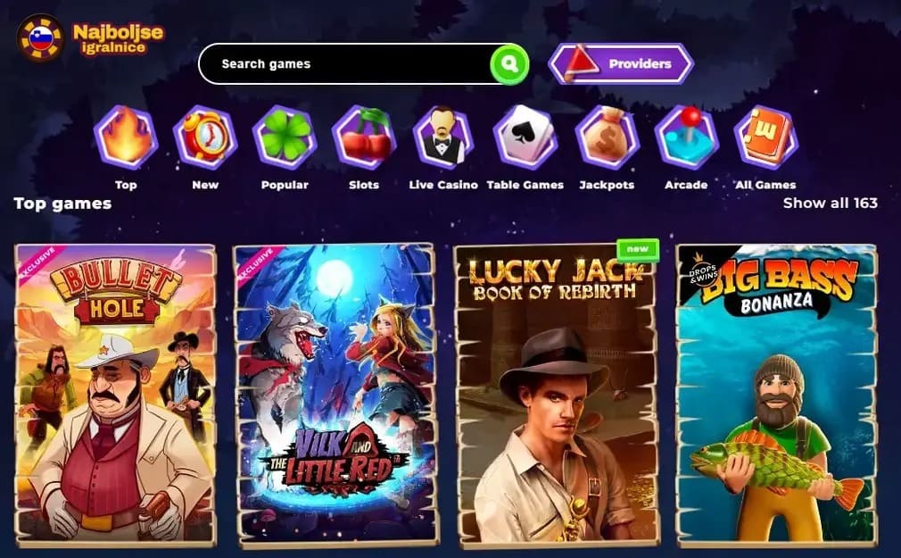 - Video igralni avtomati – s priljubljenimi temami, jackpoti in bonus funkcijami.