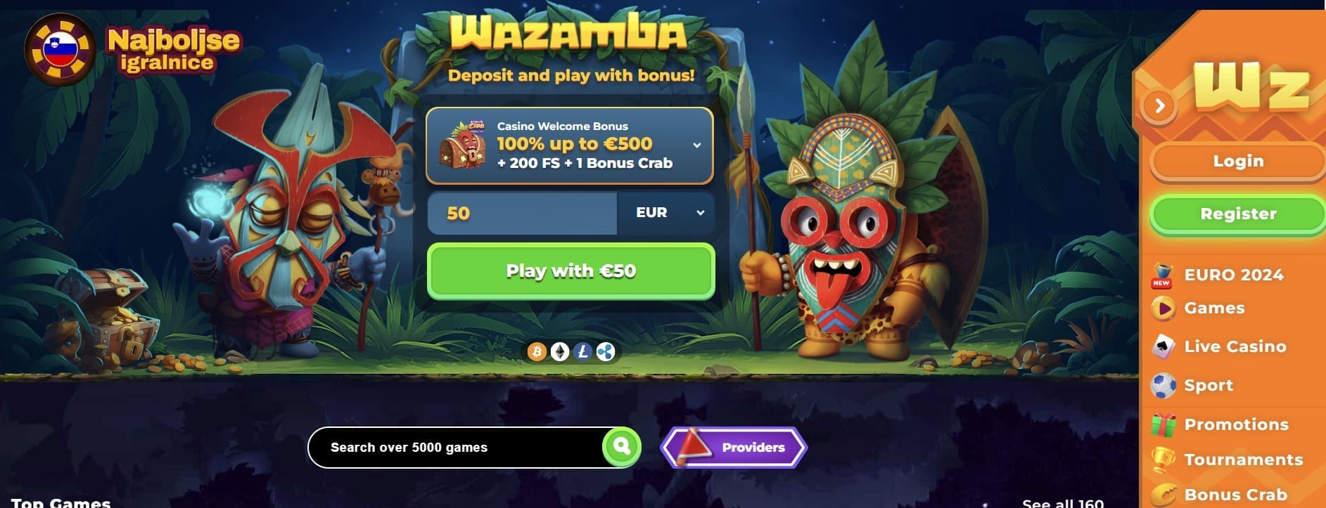 Na NajboljseIgralnice smo si podrobno ogledali Wazamba casino igralnica, igrivo in barvito spletno platformo, ki sprejema igralce iz Republike Slovenije. To igralnico upravlja podjetje Rabidi N.V., ima licenco Curacao in ponuja širok izbor iger, velikodušne bonuse ter redne turnirje. Igralci lahko uživajo v najboljših igralnih avtomatih, prostorih z igrami v živo ter edinstveni gamificirani izkušnji, kjer avatarji in dosežki dodajo dodatno plast zabave.