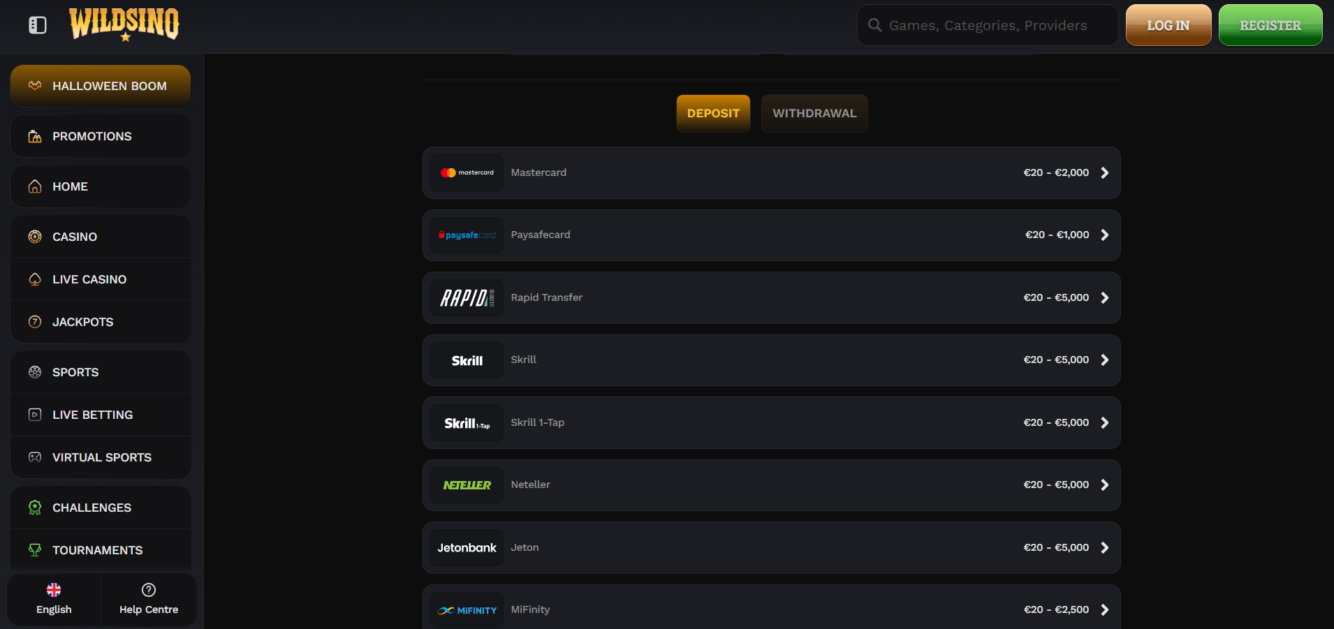 Možnosti Plačila na Wildsino Casino