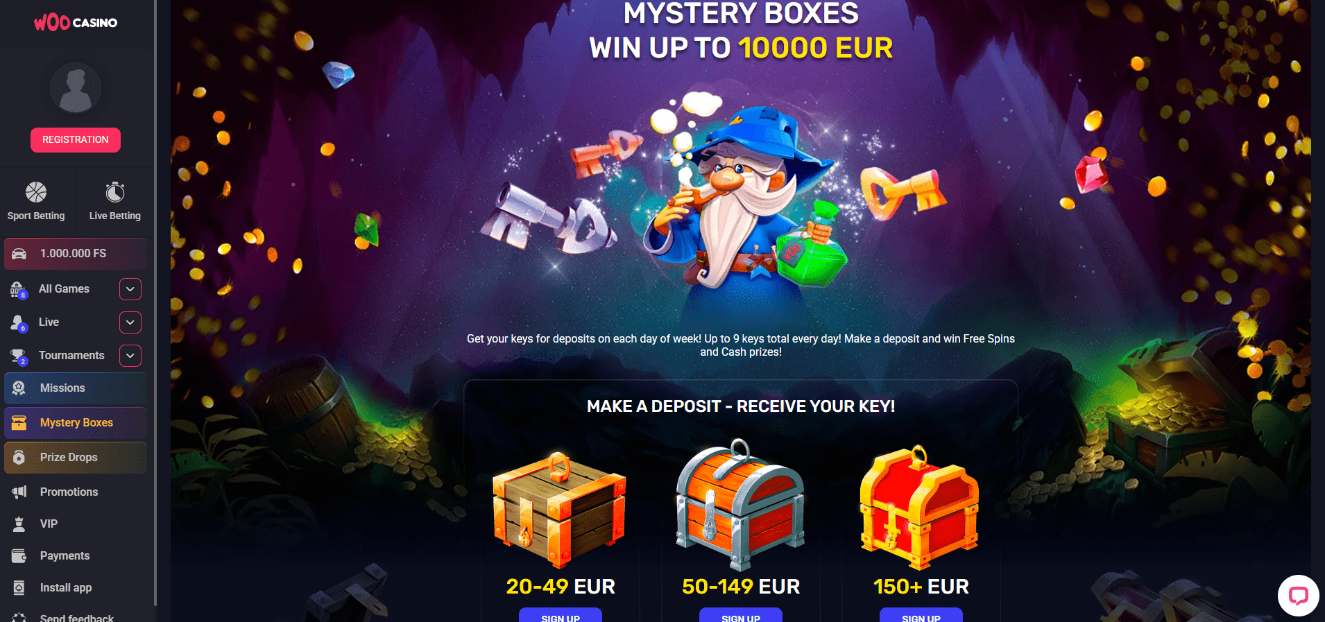 Po mojih izkušnjah je najboljša vrednost vnaprej naložena v Woo-jevem paketu dobrodošlice. Moj nasvet: načrtujte si proračun za 1. in 2. depozit (več vrtljajev/višje ujemanje), vnesite pravilne bonus kode ob zaključku nakupa in počistite 40-kratno stavo na ustreznih igralnih avtomatih, preden se lotite skrivnostnih škatel ali turnirjev.
