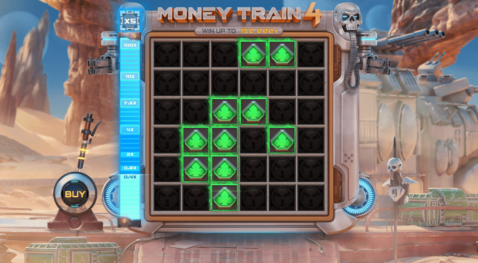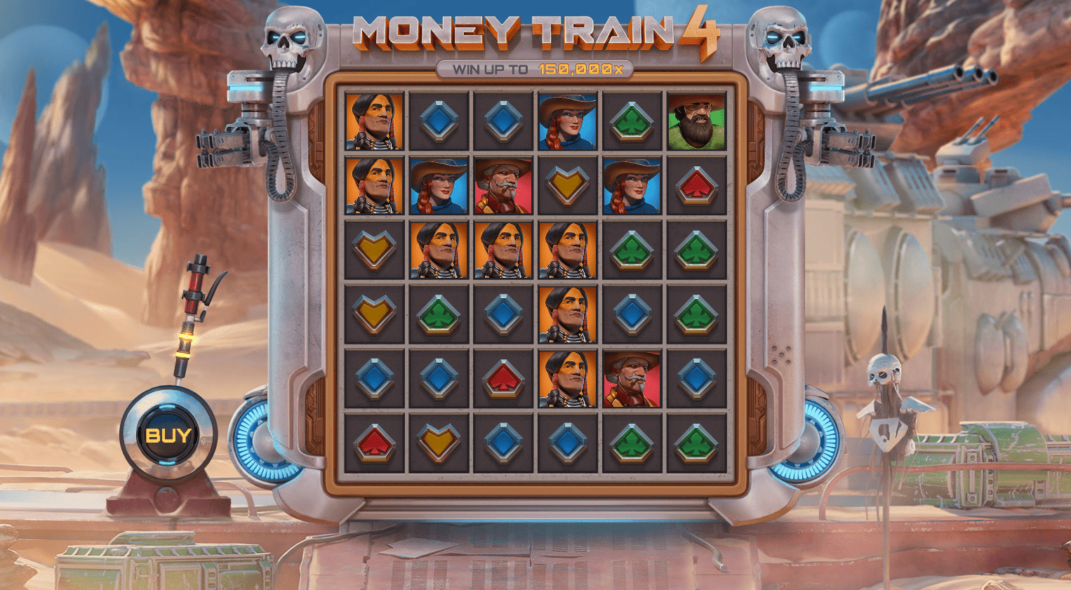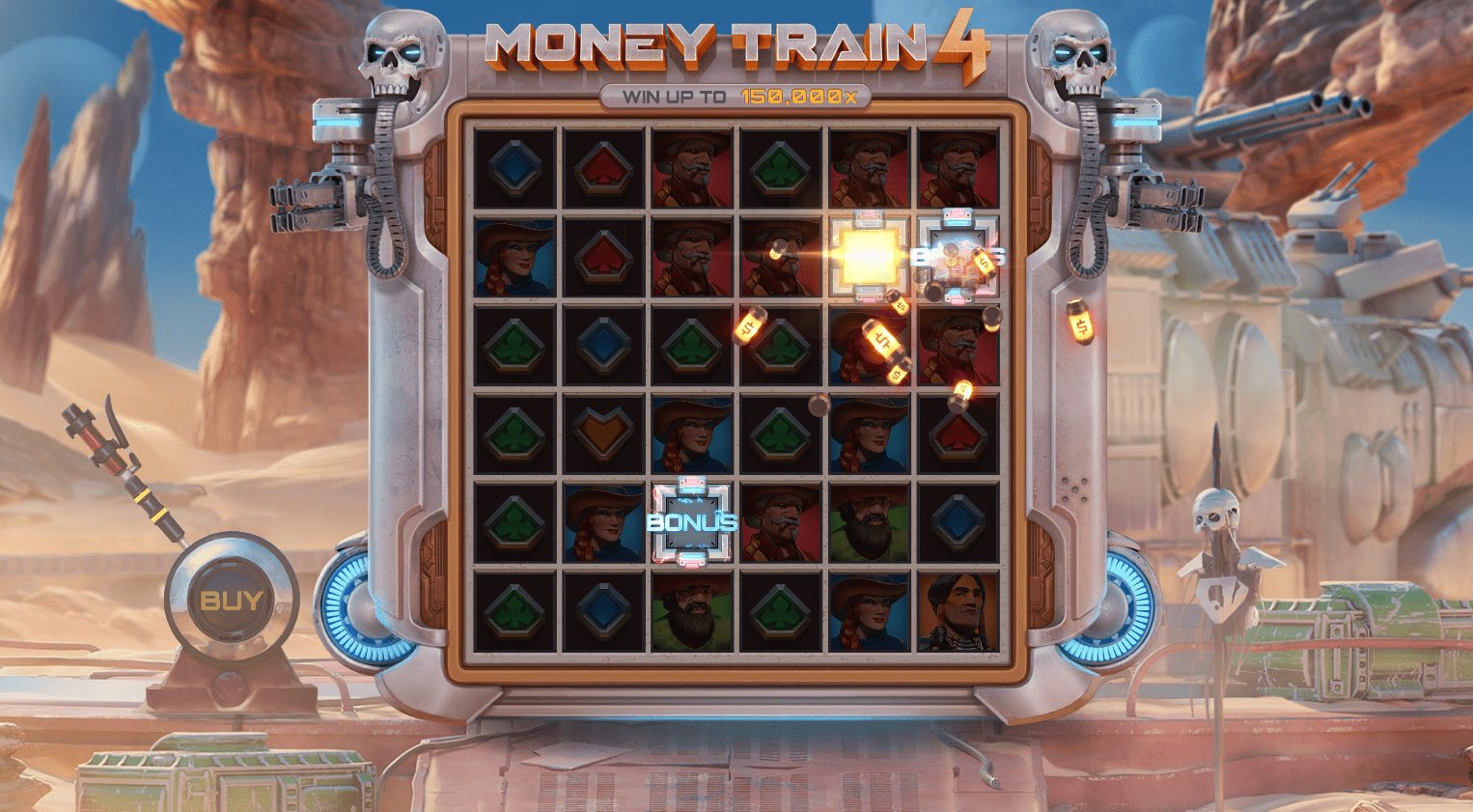 Money Train 4 je eksplozivno zadnje poglavje v uspešni seriji podjetja Relax Gaming. Postavljen v futuristični svet Divjega zahoda, ta visoko volatilni igralni avtomat ponuja postavitev 6x4, stavni razpon od 0,10 € do 100 € ter prilagodljiv RTP do 96,5 %. Poln dinamičnih funkcij in z ogromnim potencialom za dobitke je zasnovan za razburljivo igro z visokim tveganjem in visokimi nagradami.