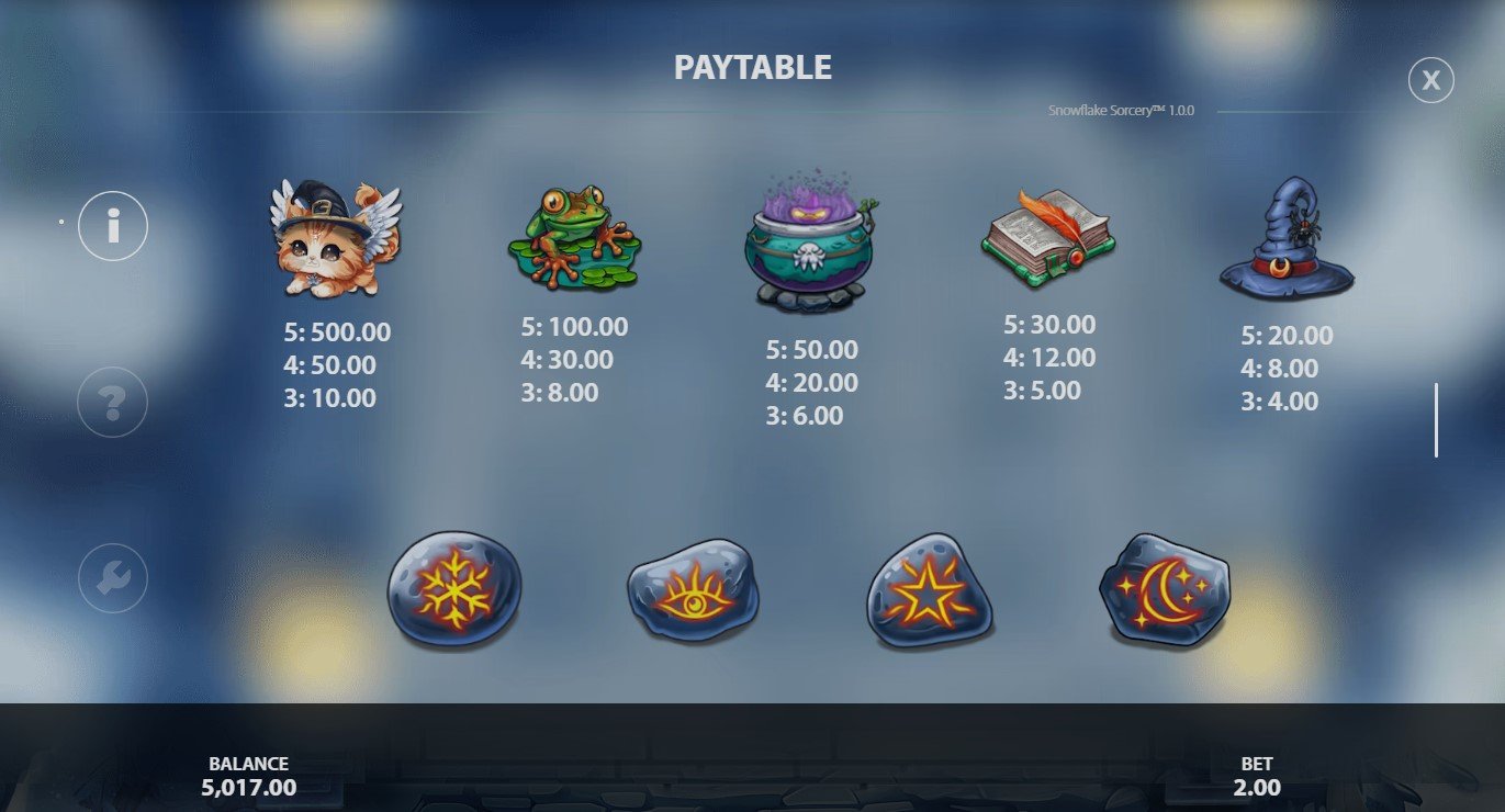Ko sem se lotil svojih prvih vrtljajev, sem najprej preveril različico Snowflake Sorcery demo, da bi videl, kako se odziva tempo igre. Izbira vložka je preprosta, saj se vrednosti spreminjajo gladko, zato lahko hitro prilagodim strategijo. Dobitki nastajajo na izplačilnih linijah, ki so jasno označene, kar pomaga ohraniti preglednost tudi v hitrejših trenutkih. Pri testiranju smo ugotovili, da osnovna igra deluje stabilno, kar je ključnega pomena pri dolgih sejah.