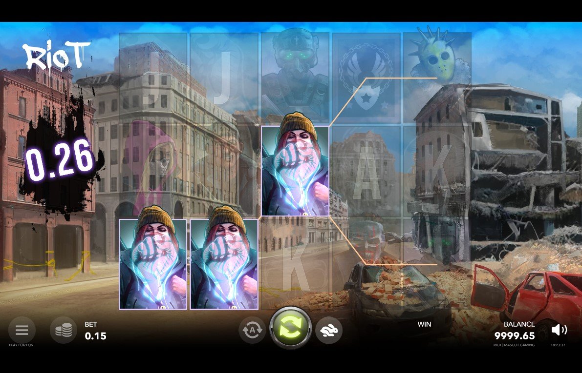 Volatilnost štejemo med višje, kar pomeni, da med osnovnimi krogi prejemam več manjših zadetkov, medtem ko preskoki z višjimi simboli pridejo v redkejših valovih. Med daljšo sejo sem izkusil več obdobij brez udarnih rezultatov, nato pa me je en sam simbol popeljal precej nad pričakovano vrednost. Zaradi te dinamike se igra The Riot najbolje obnese igralcem, ki želijo občutiti nihanje med mirnostjo in močnejšimi presenečenji.