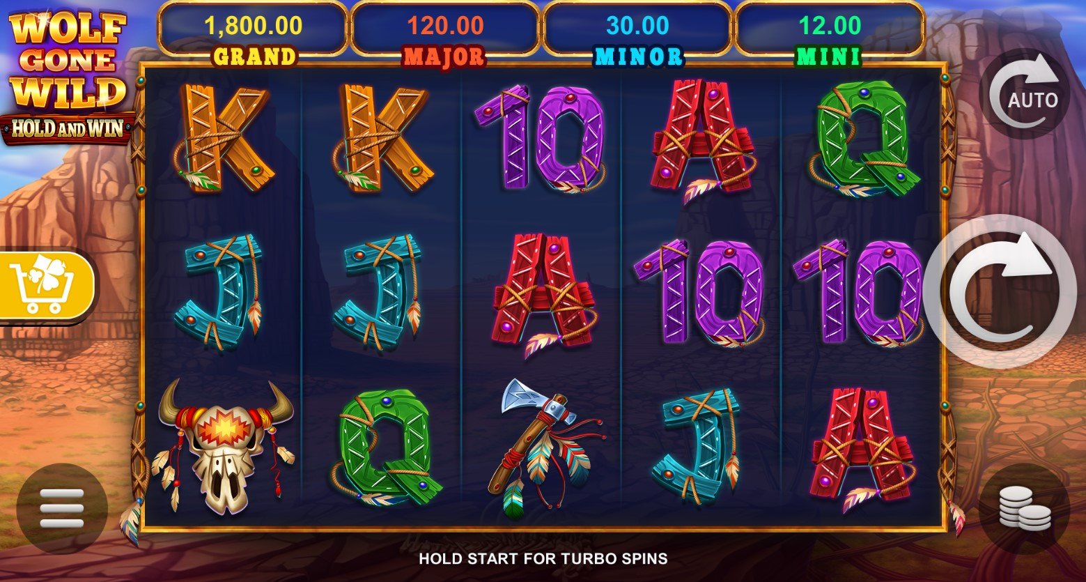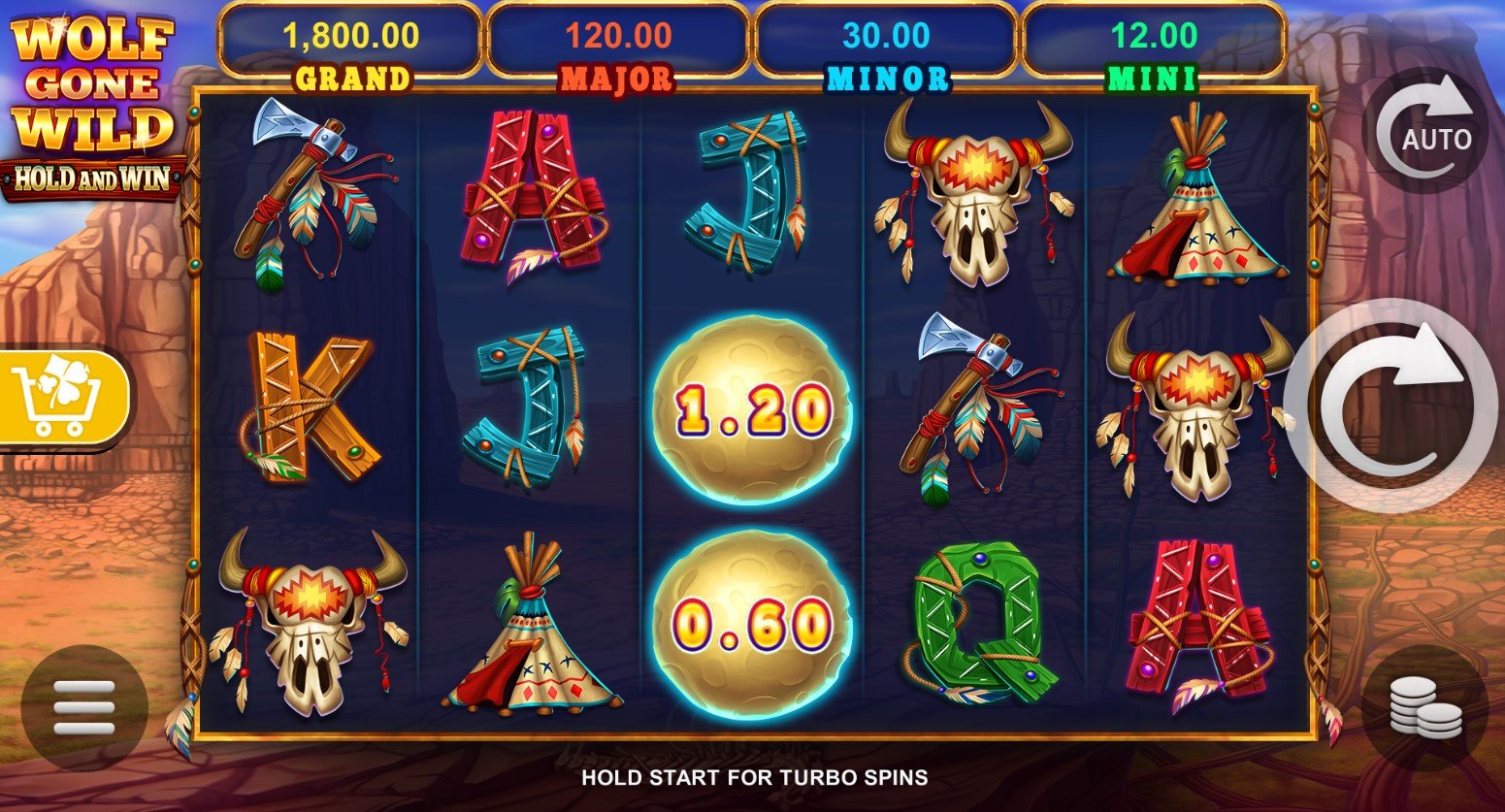 V igra Wolf Gone Wild Hold And Win se ni težko znajti, ker simboli jasno sledijo motivu severnoameriške divjine. Nižje vrednosti predstavljajo karte od 9 do A, ki vračajo manjše, pogostejše zadetke, višje pa tvorijo tomahavki, lobanje in šotori, kjer kombinacije petih simbolov lahko prinesejo bistveno višje multiplikatorje vložka.
