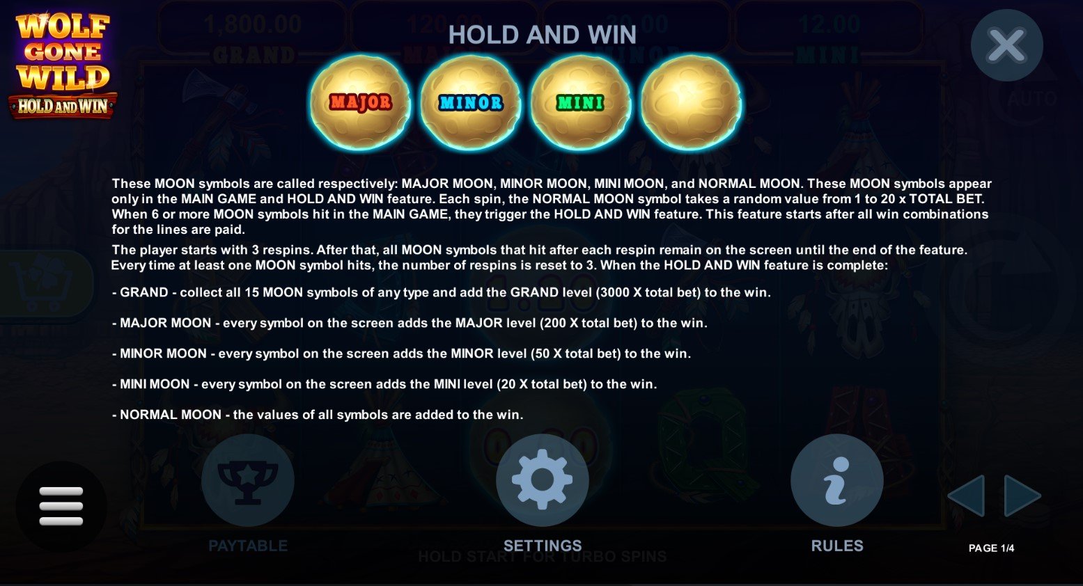 Vsak krog, kjer pride do igra na igralnem avtomatu Wolf Gone Wild Hold And Win v bonusu Hold and Win, lahko hitro preraste v napeto zbiranje simbolov, saj se števec vrtljajev ob vsakem novem znaku ponastavi. Višje vrednosti kovancev in posebni simboli z bonusi vas potisnejo bliže zgornji meji izplačila 4.000-kratnika skupne stave.